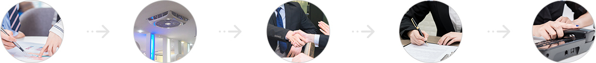 四次拜访 签订合同协议→专业团队安 装→公司专人同乙方一同去 验收通过出现